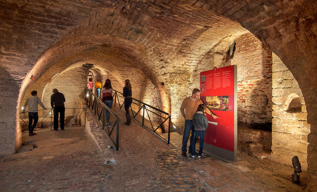 From the middle ages, this castle overlooked Brussels from Coudenberg hill. From the 12th century, the successive monarchs and their representatives transformed a small fortified castle into a sumptuous residential palace, one of the most beautiful palace of Europe and one of Charles V’s main residences. This prestigious building is severely damaged by fire in 1731. Some forty years later, the ruins of the palace are pulled down and the ground flattened out for the construction of the new royal district. The remains of this palace make up the Coudenberg archaeological site. During your visit, you will discover the Rue Isabelle and the old structures of the main buildings of the former palace of Brussels, which are now the foundations for today’s royal district and the Hoogstraeten House where the most interesting discoveries made during the various archaeological excavations conducted on the Coudenberg are displayed.